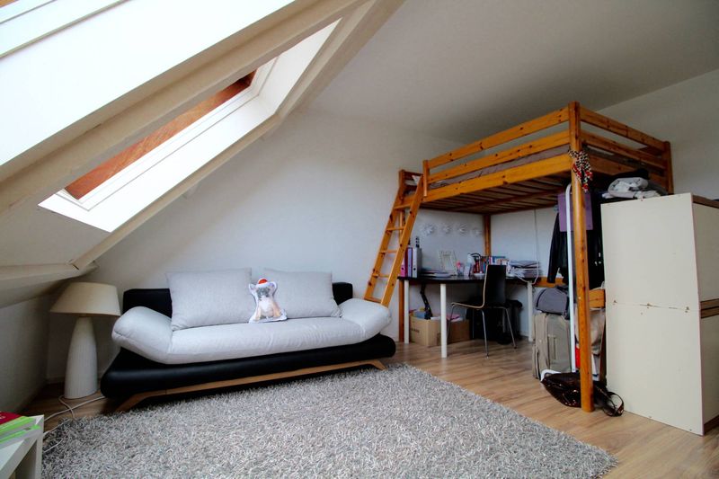 Situé au troisième et dernier étage avec ASCENSEUR dans une résidence très bien entretenue, il se compose d’une pièce de vie avec plancher avec deux grands velux, d’une cuisine séparée, d’une salle de bain, de WC séparé.