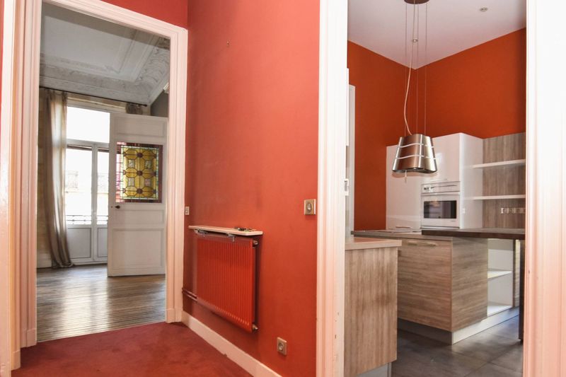Situé au premier étage d’un immeuble bourgeois ravalé, il se compose d’une vaste entrée, d’un salon, d’une salle à manger avec plancher et cheminée (3,90 m de hauteur sous plafond), d’une cuisine séparée avec espace repas, d’un espace bureau, de quatre chambres, d’une salle d’eau, d’une salle de bain/douche.